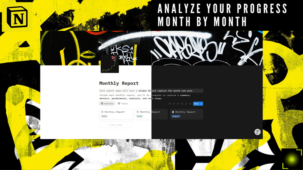 Track performance, results, and progress with the Monthly Report Template for Notion. This template allows you to collect data, analyze metrics, and create clear, organized reports, making strategic decisions and continuous improvement easier.