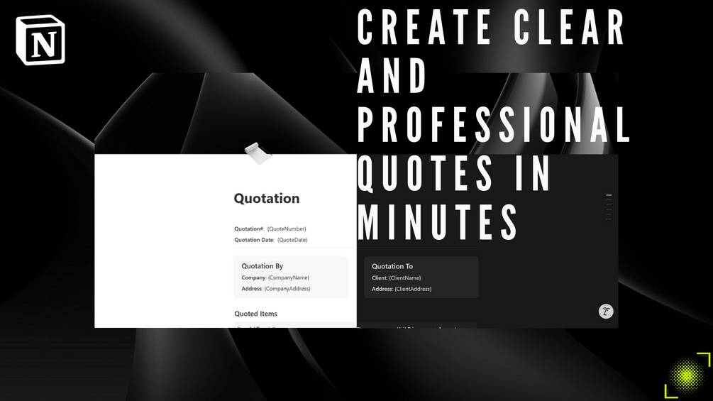 Creating professional quotes requires time and attention to detail. With the Quotation Template for Notion, you can create, manage, and customize your quotes quickly, elegantly, and without hassle.